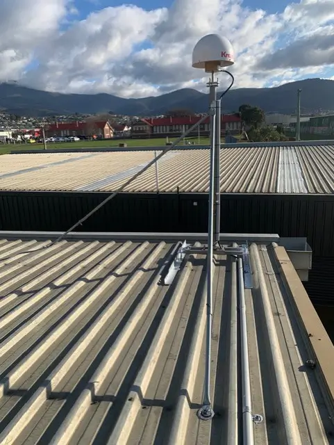 Our team recently completed the installation of a Kress robotic automation system on a commercial rooftop in Derwent Park. This project involved the setup of a satellite positioning antenna, custom mast mounting, and internal control unit installation to enable precise robotic guidance across a large operational area.