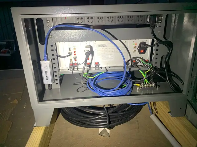 All internal electronics were housed in a secure, ventilated control cabinet with proper cable management. Power, data, and antenna feeds were neatly configured, allowing for easy servicing and future upgrades.