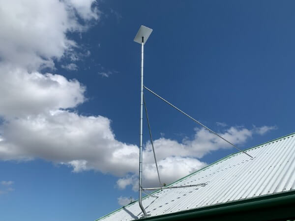In this case, the Starlink dish was installed on a high rooftop mast using a sturdy pole mount with cross-bracing for added wind resistance and long-term durability. Guy wires were strategically attached to anchor points on the roof to ensure stability, even in high-wind conditions common in the region.